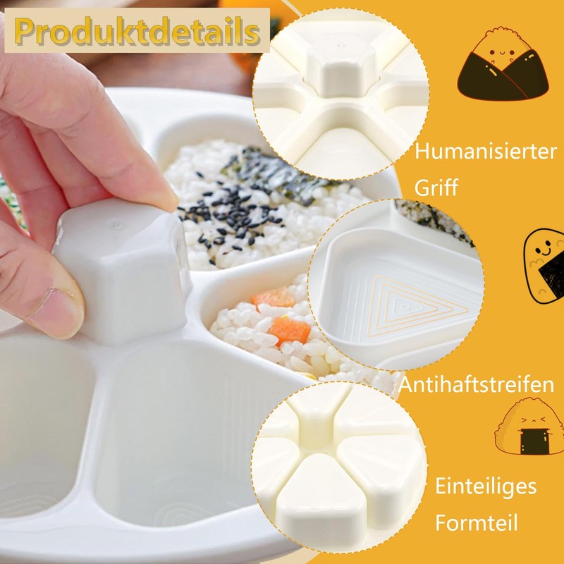 - Non-stick strip design: the rice ball sushi mold set features built-in strips with triangular protrusions at the bottom, making the rice balls less sticky, better shaped and not stick to your fingers