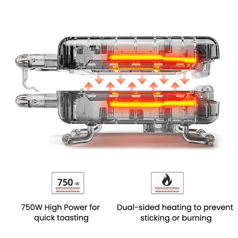 Efficient Heating: With a 750W high-power dual-sided heating system, it quickly and evenly heats the ingredients, achieving a crispy exterior and tender interior while sealing in the original flavors for optimal baking results