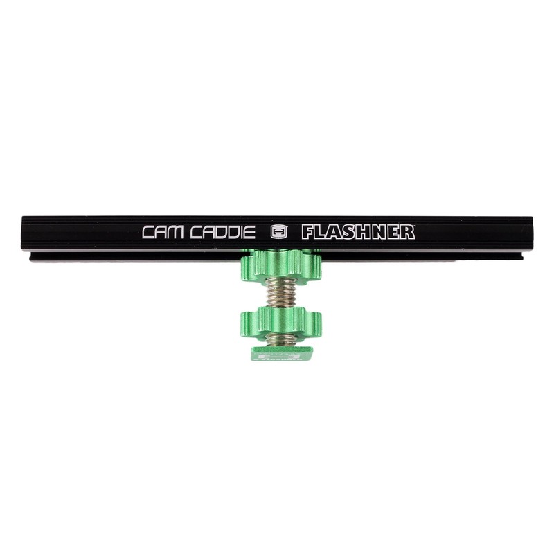 6 Inch Cold Shoe Extension Bracket - Dual Sided Camera Flash Mount with D-Flashner Adapter by Cam Caddie - Black / Green