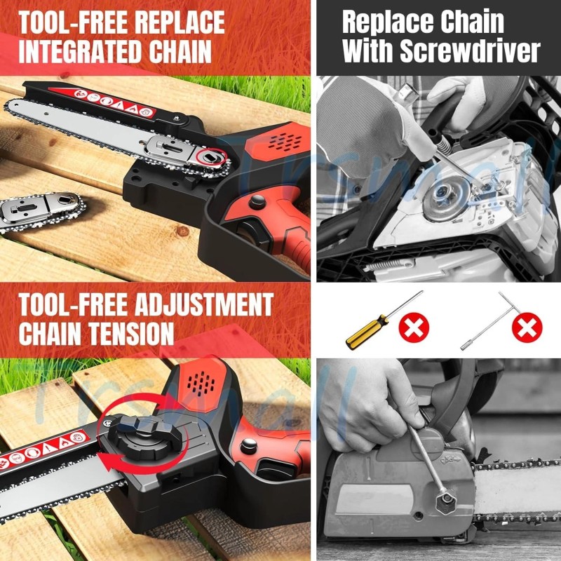 our mini chainsaw design a safety lock button that requires simultaneous activation with the start button to prevent accidental operation.