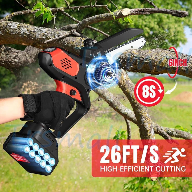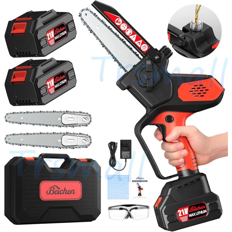 6 inch Mini Chainsaw, Portable Electric Cordless Chainsaw Set W/2 Battery
