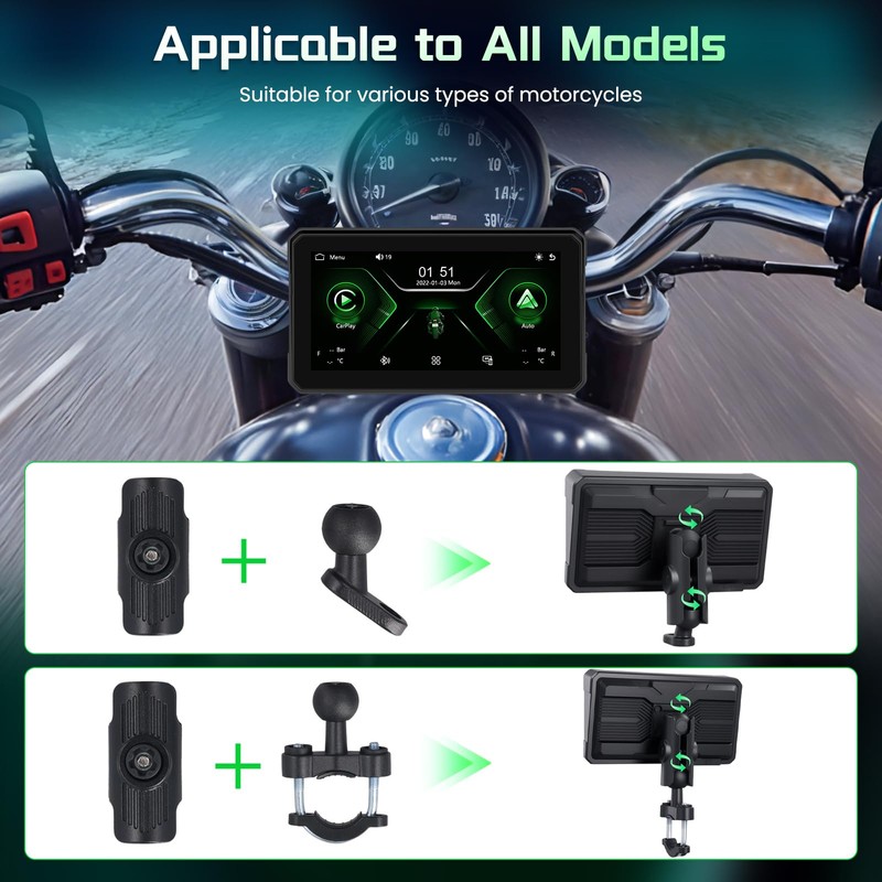 - Universal Fit & Smart Mount: Fits all motorcycle models (Harley, Honda, Yamaha, etc.). The included adjustable mount lets you customize angle, height, and position in seconds. Tool-free installation—ride in 10 minutes!