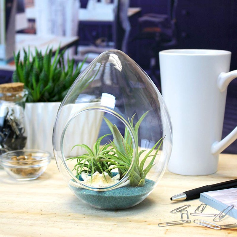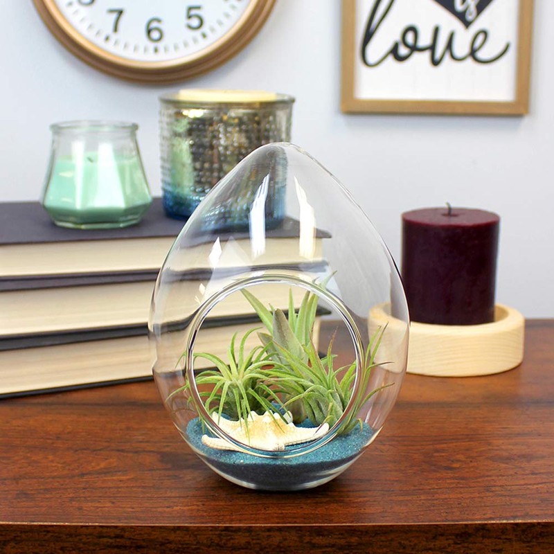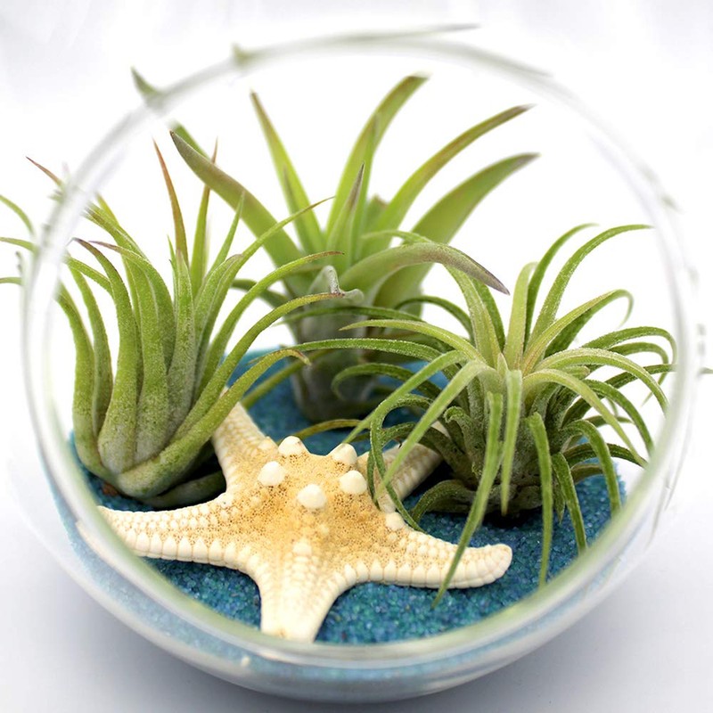 - 🌸 COMPLETE KIT - Includes 6-inch standing glass teardrop vase terrarium, colored floral sand, three live tillandsia air plants and a beach theme accent or seashell.
