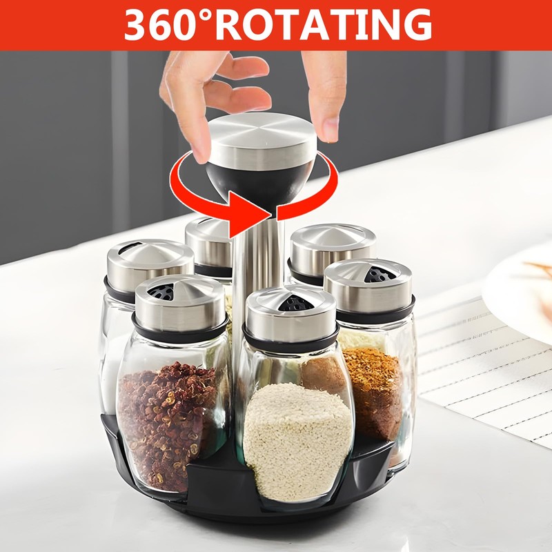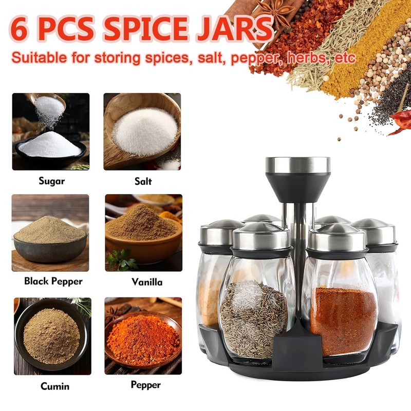 - Space-Saving Storage Solution: The rotating base design of this rotating spice organizer maximizes counter space. Neatly hold 6 glass spice jars in one compact unit, keeping your kitchen tidy while ensuring all spices are within easy reach.