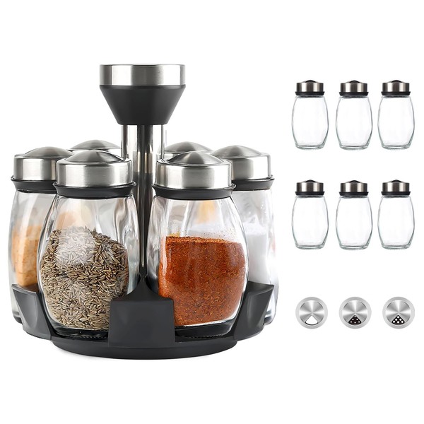 - Effortless Filling Design: The transparent glass body of this spice set allows easy visibility for refilling, avoiding mess. Its compact size keeps spices fresh, perfect for storing salt, pepper, or any seasoning in your rotating spice rack.