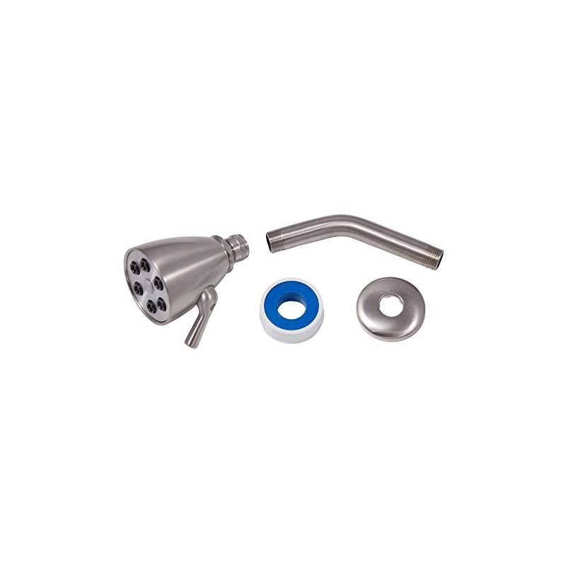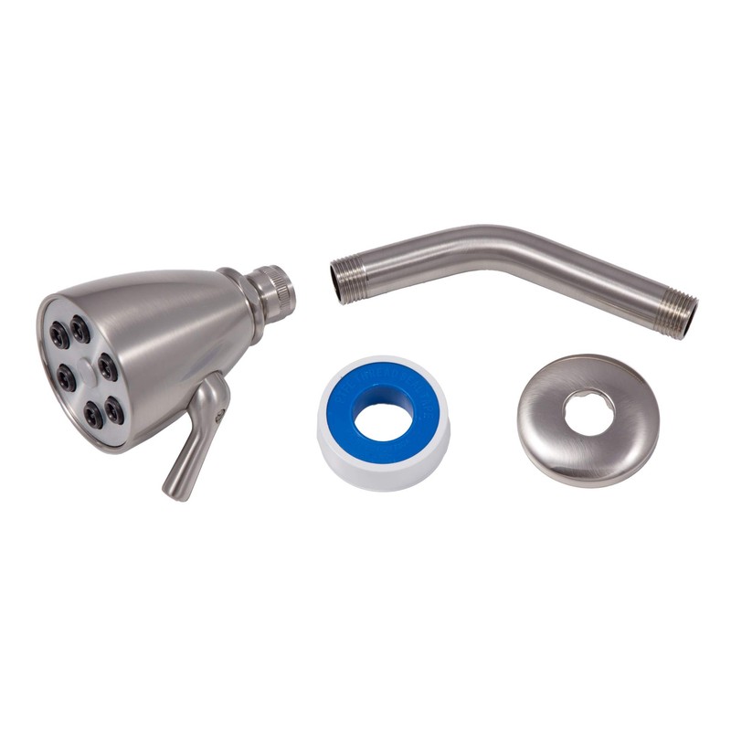 6 Jet Brushed Nickel Giessdorf Showerhead with 6 Inch Shower Arm, Flange and Thread Sealing Tape