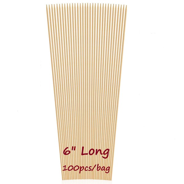 (6"L x 100PCS) Bamboo Skewers Heavy Duty Wooden Skewers Hot Dog Forks Heavy Duty Kebab Skewers Great Campfire Accessories