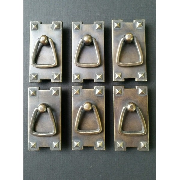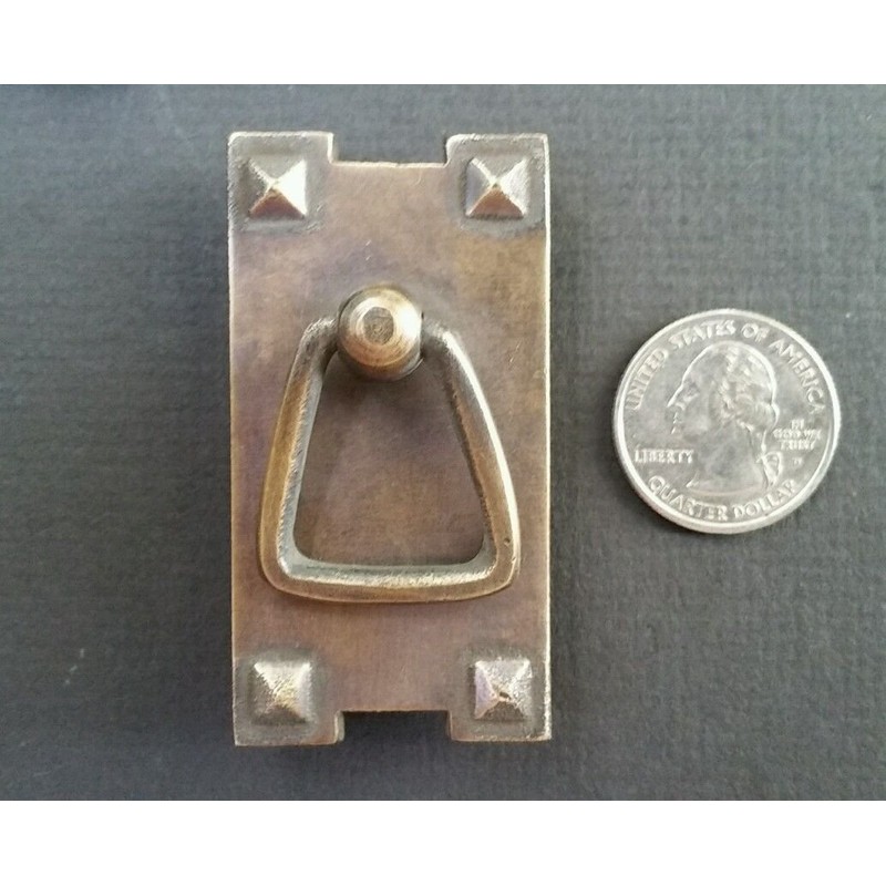 6 Mission Stickley Antique Style Brass Vertical Ring Handles pulls 2 1/2" #H25
