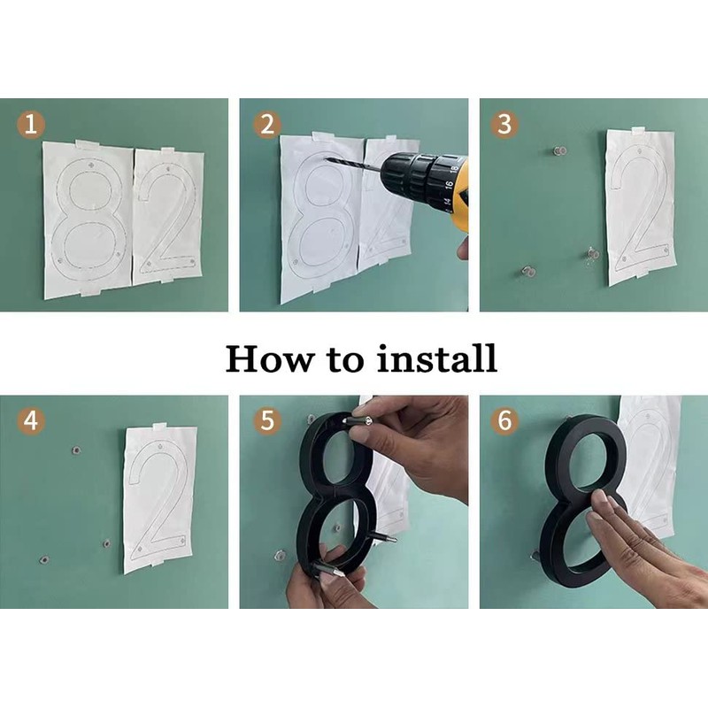 • 【Easy to install】 The house address numbers for outside modern is DIY installation, following the instruction, and using the mounting template inside to mark holes, the number is very easy to install.