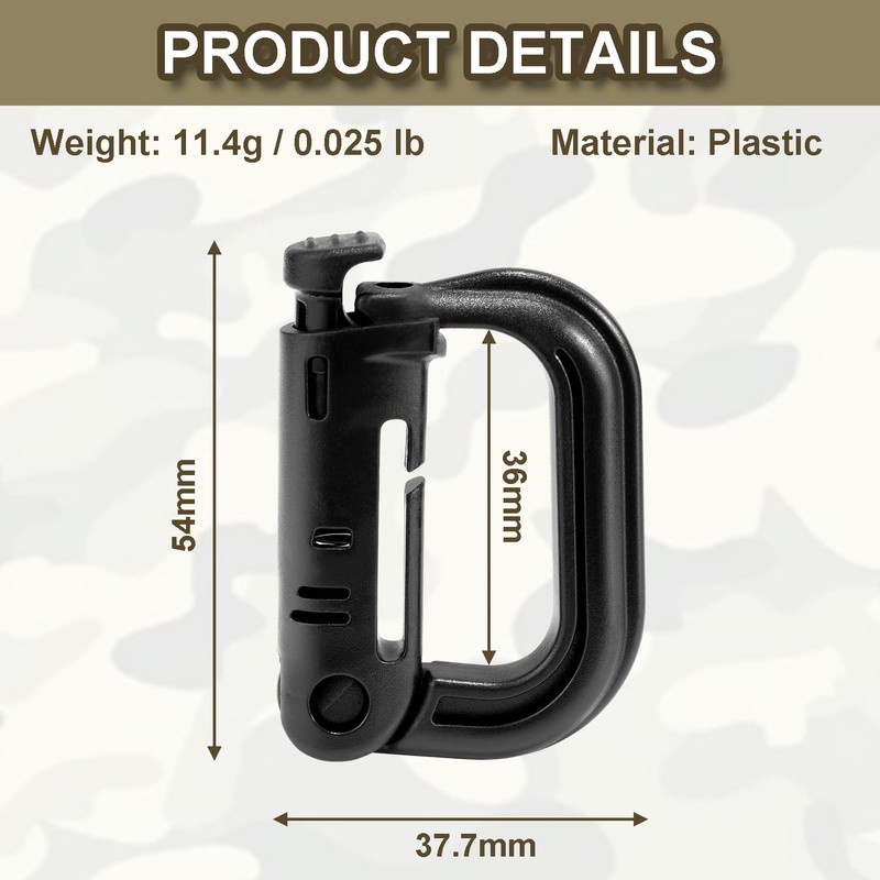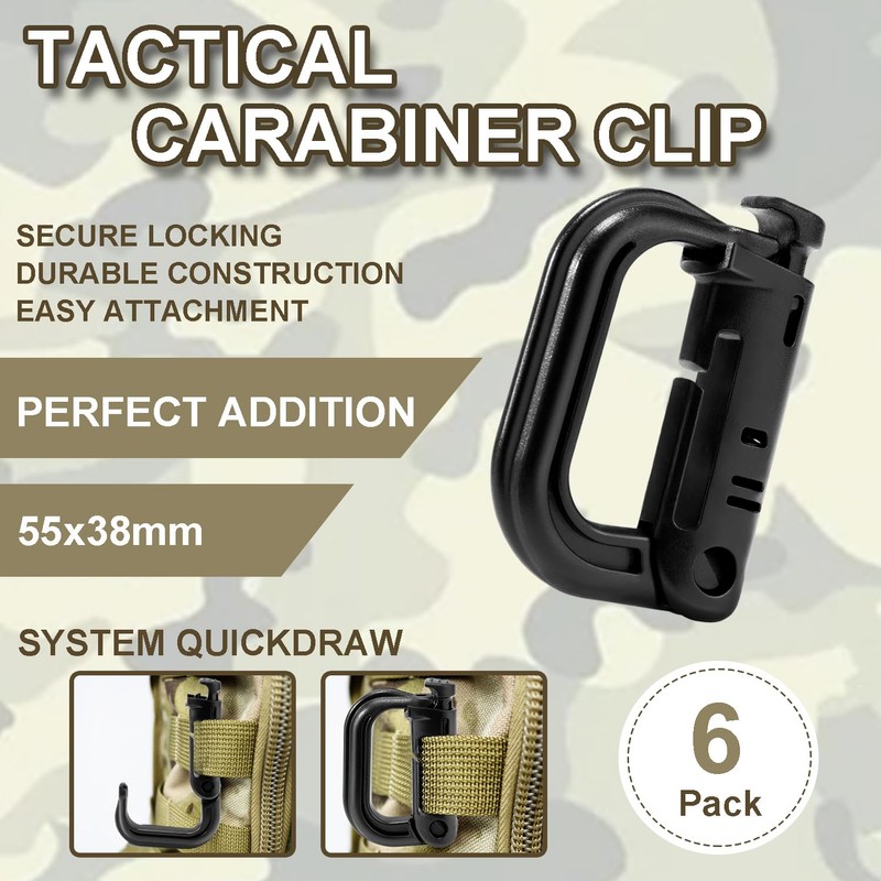 • PACKING LIST: Each pack comes with 6 pieces of heavy-duty tactical D ring carabiner clips to secure gear to backpacks, pouches and vests.