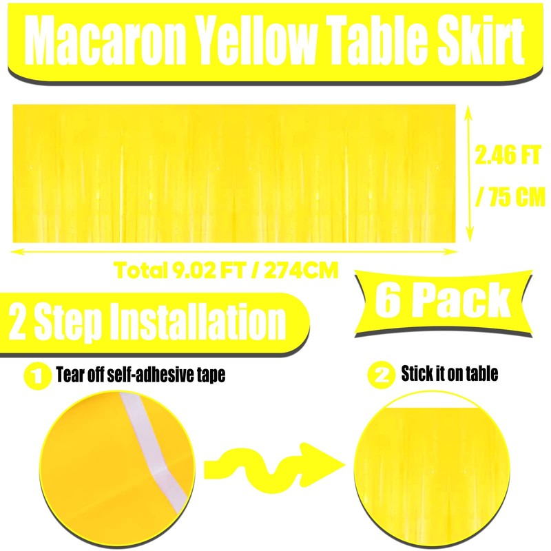 6 Pack 29x108 Inch Metallic Foil Fringe Tinsel Table Skirts Banner for Rectangle Tables Streamer Garland Curtains Backdrop for Wedding, Birthday, Parade Floats, Christmas Party Decoration(Yellow)