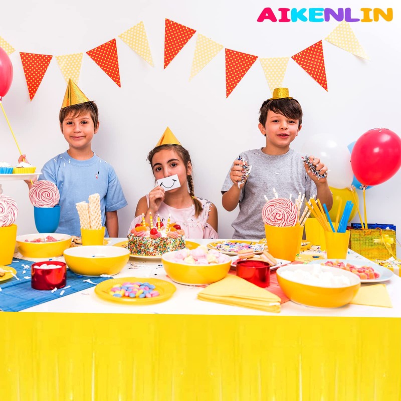 - 【Package Includes】6pcs/set metallic fringe table skirts / shiny tassel banner, beautiful and shiny, provide you with great decoration effects, Each pack of table skirt measures 29x108 inches. Each one will be 9 Ft long, 6 pack will cover 54 FT length of tables.