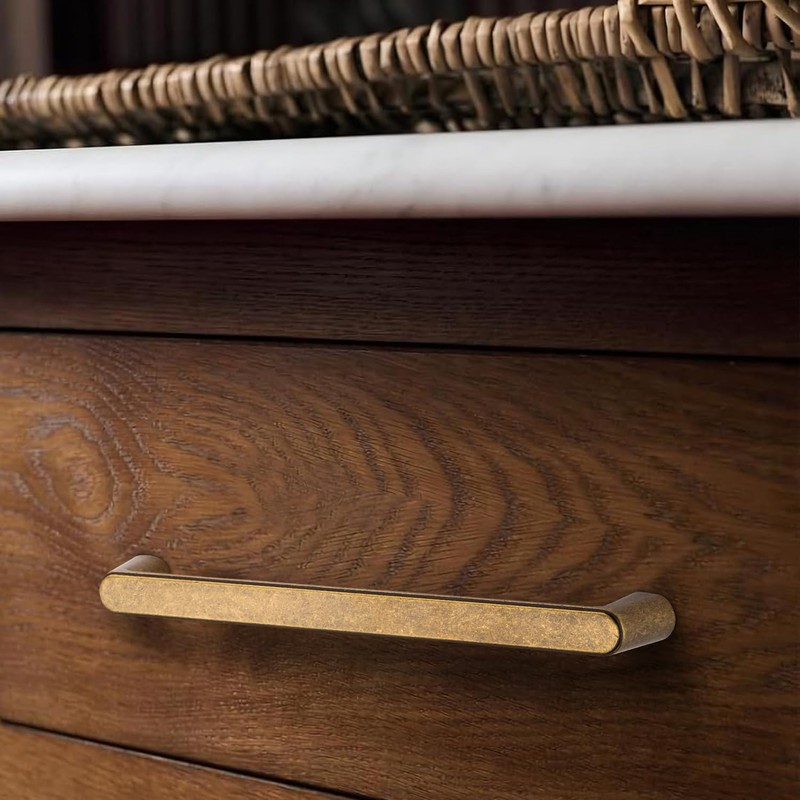 6 Pack Antique Brass Cabinet Handles - 128MM Hole Centers Vintage Drawer Hand...