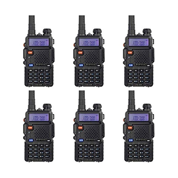 6 Pack Baofeng UV-5R Dual Band Two Way Radio, Walkie Talkie with 1800mAh Li-ion Battery