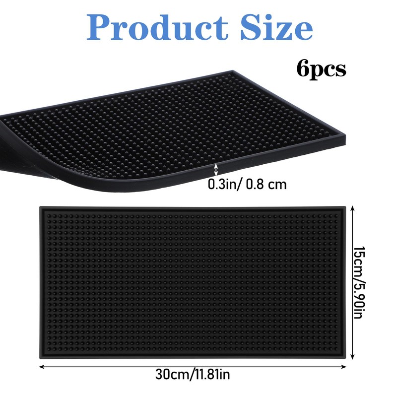 • What You Get: 6 high-quality black bar mats (6" x 12" each), providing ample coverage for multiple workstations. Whether you're a professional bartender or a home enthusiast, these bar spill mats are a must-have for a tidy and efficient workspace.