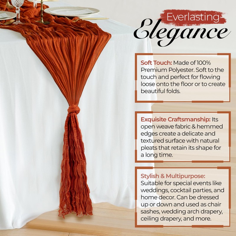 6 Pack Cheese Cloth Table Runners, 10 Foot Cheesecloth Table Runner Boho, Cheesecloth Table Runner 35x120, Terracotta Cheesecloth Table Runner, Terracotta Table Runners, Wedding Arch Draping Fabric