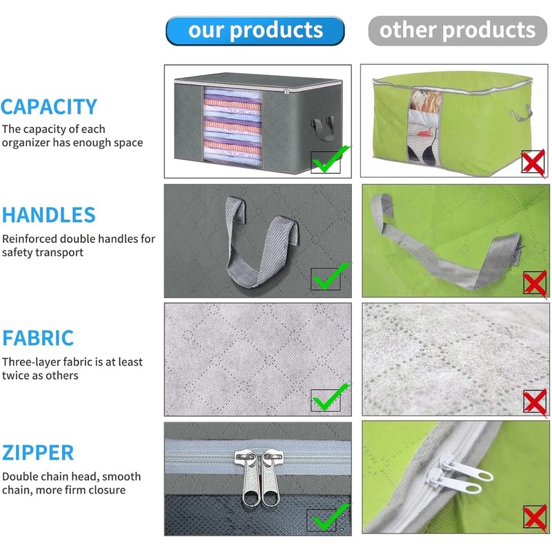 6 Pack Clothes Storage, Foldable Blanket Storage Bags, Storage Containers for Or