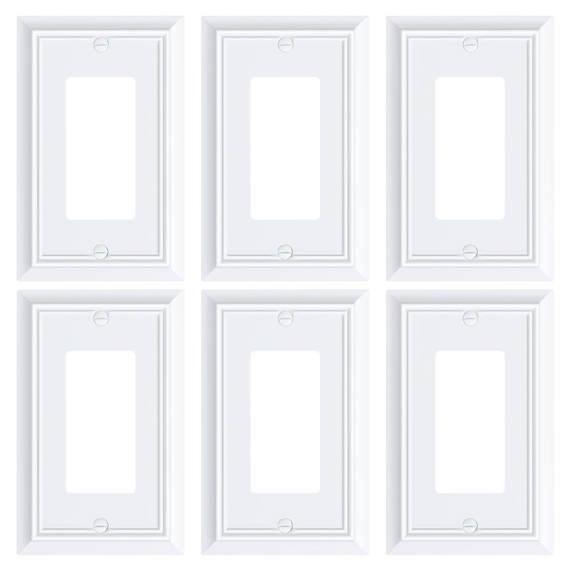 6-Pack Decorator Wall Plate Cover, Pure White Decorative Switch Plates and Outlet Covers, Durable Natural Bamboo Fiber Wall Plates for Electrical Outlets, Receptacle, GFCI Outlet, Dimmer Switch