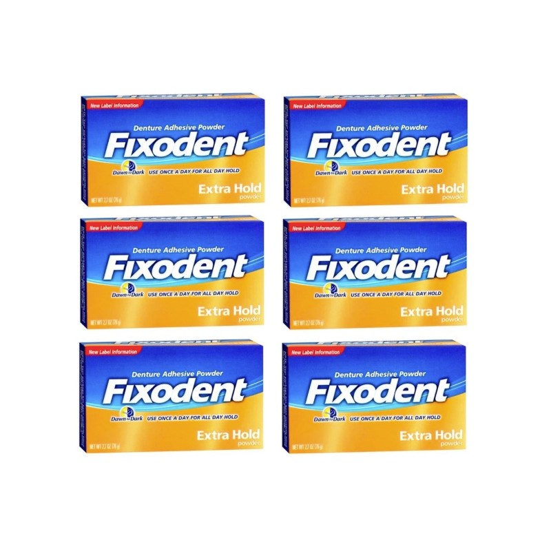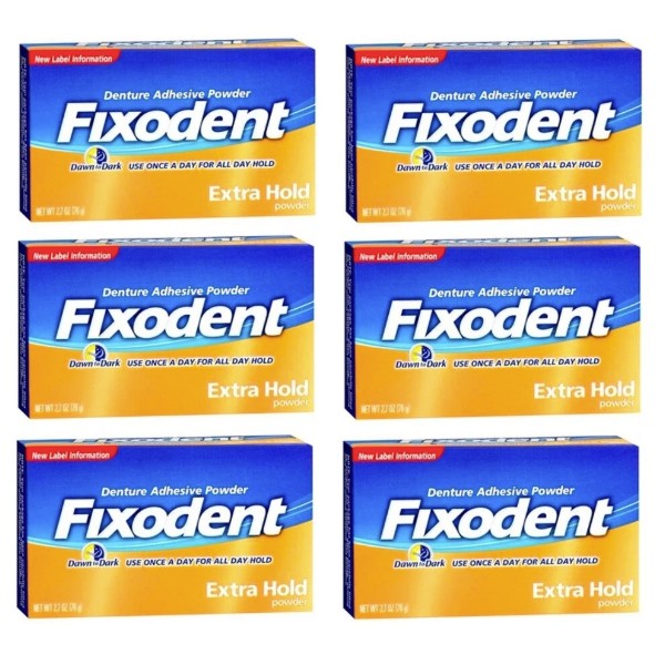 6 Pack - Fixodent Denture Adhesive Powder Extra Hold 2.70oz Each