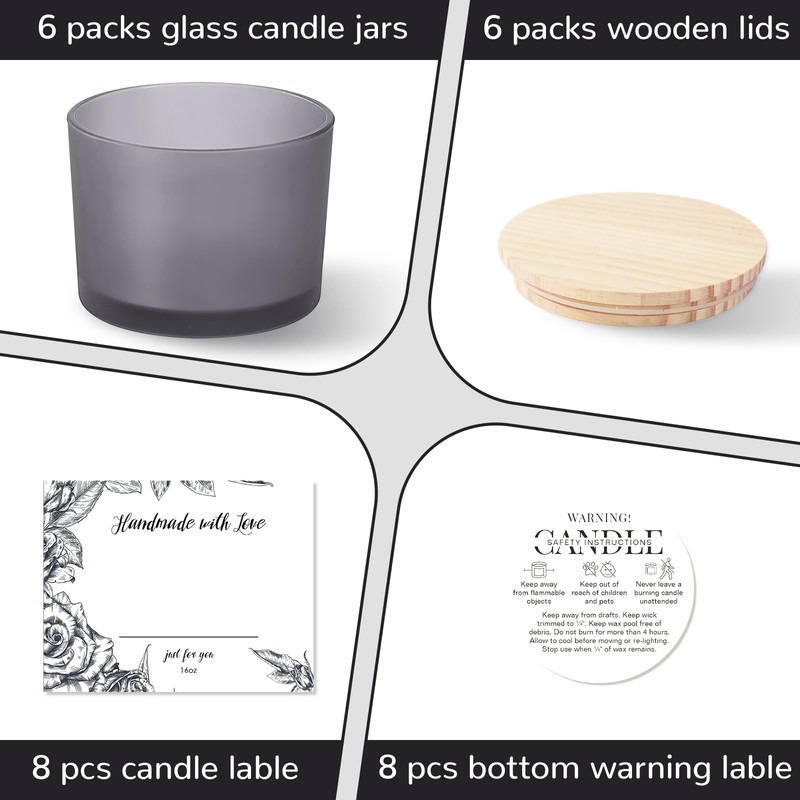 - đź’•Candle Making Accessories: You will get 6 pcs thick glass candle jars with lids made of quality wood material, 8pcs pretty candle labels and 8pcs bottom warning labels are also included, all of the features make them perfect for 3 wicks candle making.