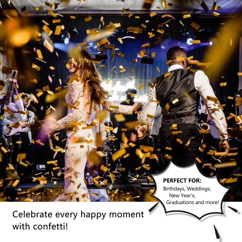 - 【Gold Confetti Poppers】The use of confetti cannons is a vibrant and festive addition to various occasions. From single party, weddings, birthdays, and Christams to corporate events and celebrations, they add a touch of color and excitement. The sudden burst of lips paper shards creates a joyful atmosphere, surprising and delighting guests. Whether indoors or outdoors, confetti cannons are a safe and effective way to make any special day even more memorable.