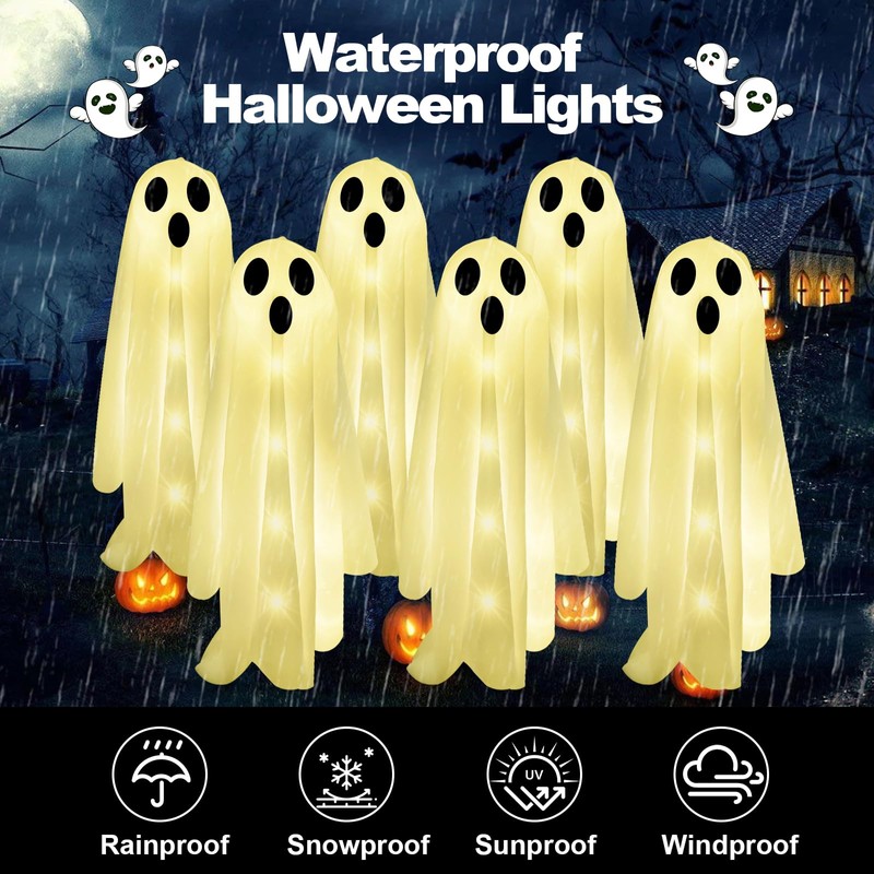 - 【Outdoor Spooky Ghost Halloween Decorations】Greet trick-or-treaters with spooky light up ghost outdoor decorations! This ghost Halloween decor creates a haunted vibe and becomes the centerpiece of your yard. Waterproof and dustproof for all-weather outdoor use. Store indoors during extreme storms to enjoy your ghost light year after year.