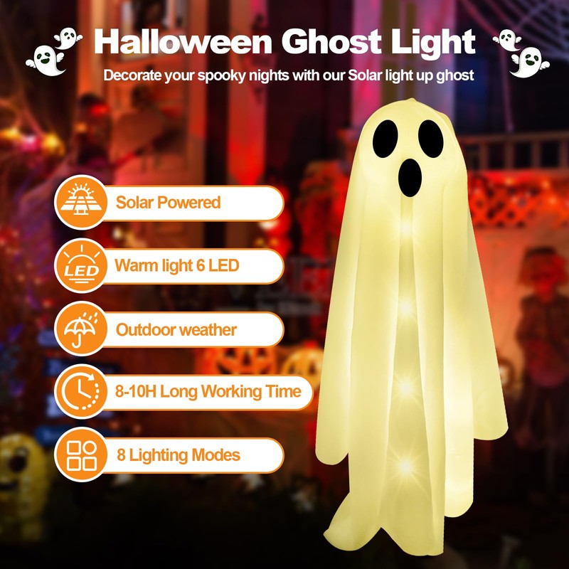 - 【Halloween Ghost Decorations with Solar Power】Set a spooky scene with our Halloween ghost decorations! These Halloween light-up ghosts glow with an eerie charm, perfect for adding a haunted touch to your yard or doorstep. Simply place them where the sun shines—no outlets needed. Let these solar-powered Halloween light-up ghosts bring the fun to life all night long!