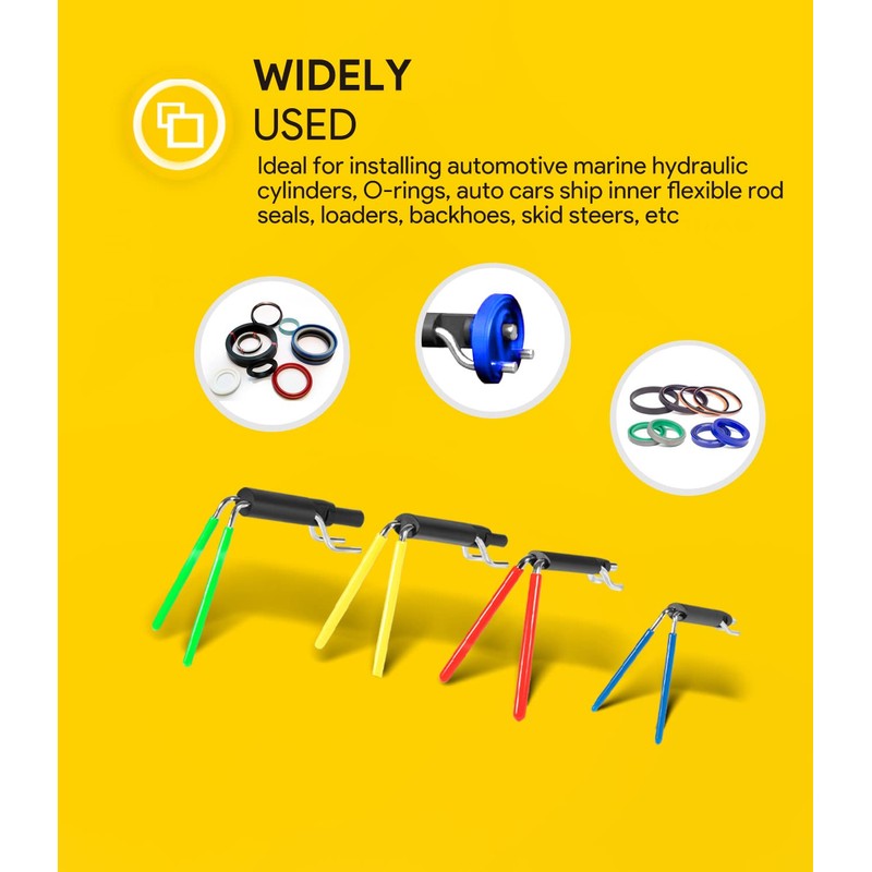 - 【Expertly Made & Superior Quality】 Comfortable rubber handle cover design to avoid slippage. Frosted material for enhanced friction. 4 different colors for easy identification of different sizes. Strong welds and and well-polished edges provide smooth operation and great protection for both seal and cylinder. Considerate block handle holder, easy to screw into your work bench for help on tough seals.