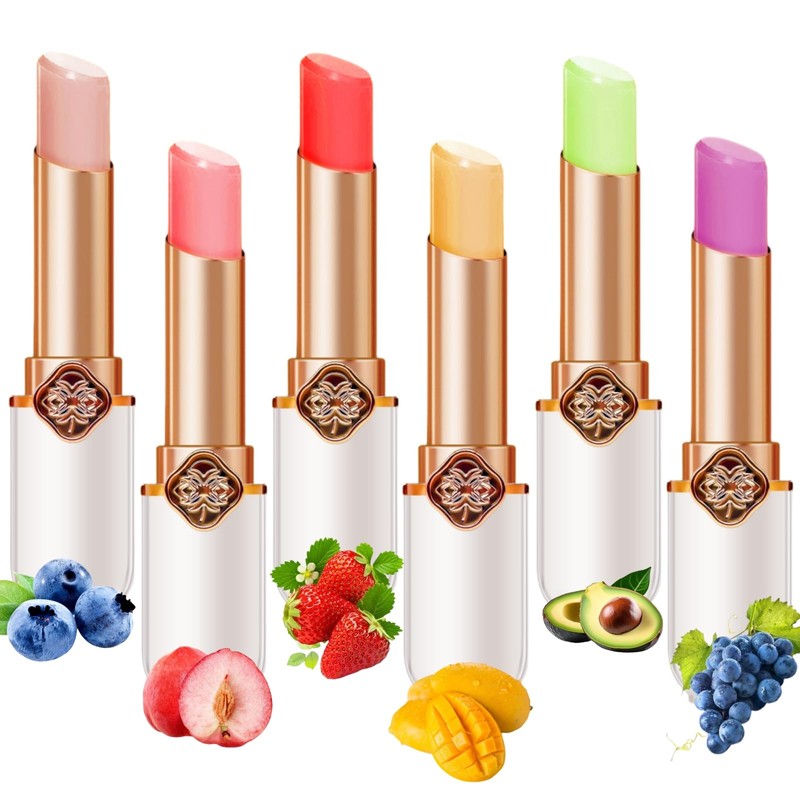 6-Pack Jelly Lipstick Set - Fruit-Infused Color Changing Lip Balm - Peach, Aloe Vera, Strawberry, Blueberry, Avocado & Grape - Long-Lasting, Moisturizing Lip Makeup (6PCS)