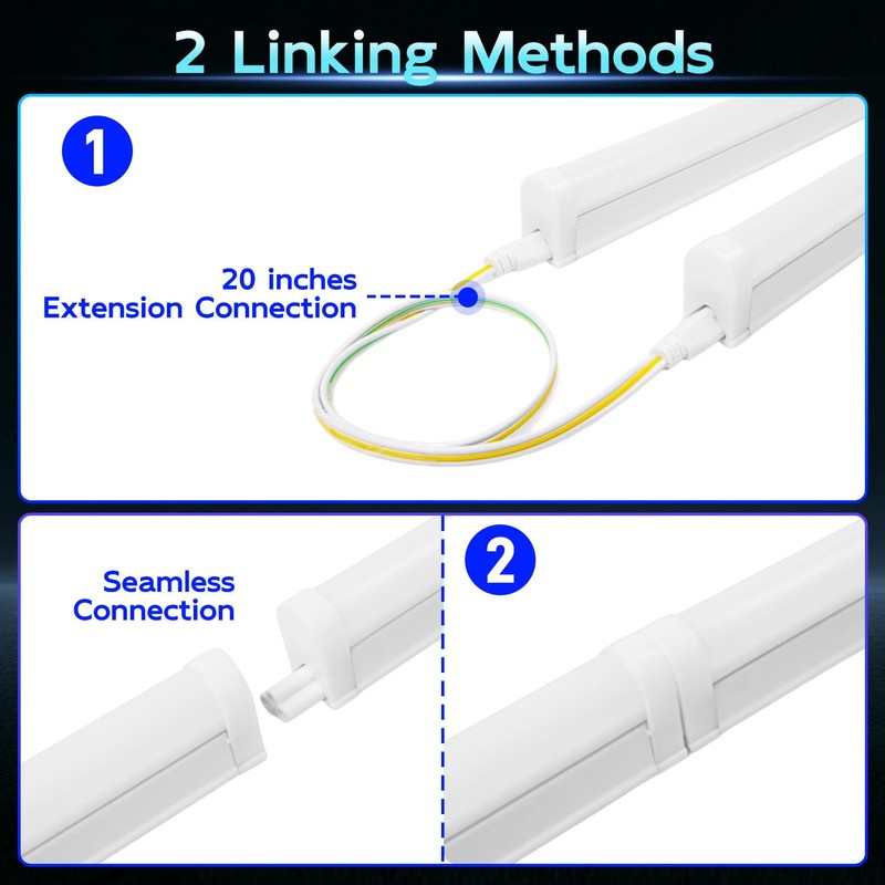 - ✔ Linkable - Using 20" cords or seamless connectors to connect up to 7 pcs linkable shop lights together in your garage, cupboard, workshop, under cabinet and storage room.