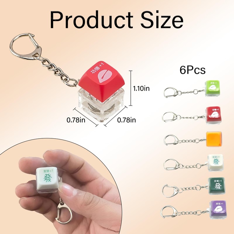 - 3.Versatile Use: The keycaps can be detached and used on your keyboard, adding a unique and personalized touch to your workspace. The mini size of this fidget keychain makes it easy to carry around. It can be attached to your keys, purse, backpack, or any other bag, adding a touch of style and functionality wherever you go.