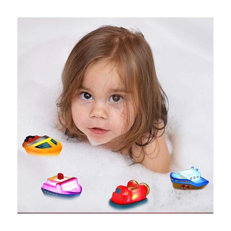 - 6 packs light up boat bath toys have 6 different type and color! Flashing colourful light and cute shape will add endless entertainment for baby bath, your kid will definitely enjoy the fun bath time!