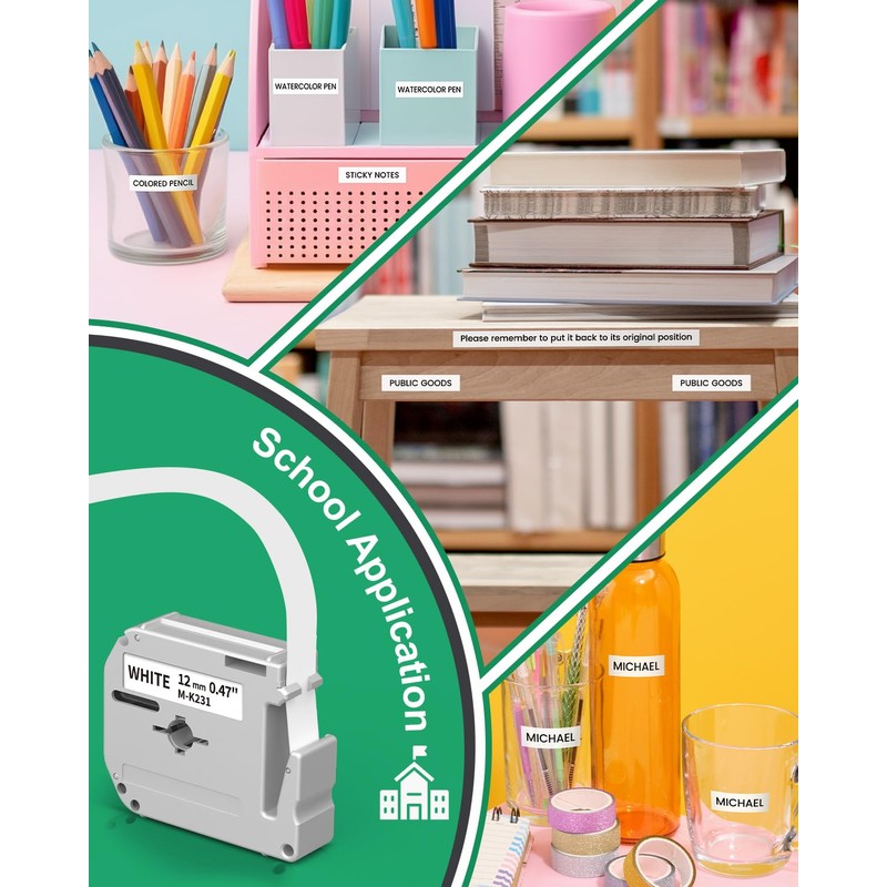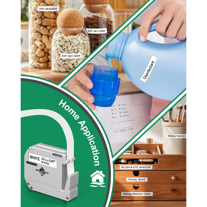 Application: These replace for M231 M-K231 label maker tape 12mm 0.47 white label are widely used in the office, home, shop, hospital, hotel, lab, factory and other indoor places.