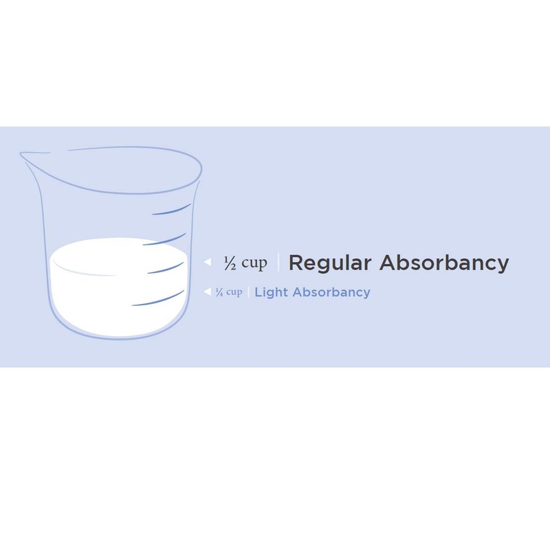 - Regular absorbency - Holds up to 5 ounces of liquid. Suitable for light to moderate incontinence. Not for heavy, severe, or total incontinence.
