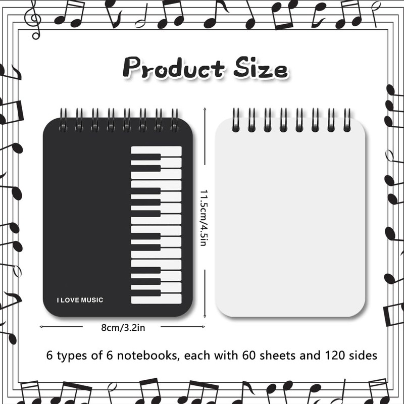 - What You Get - 6 pack music note pattern cover small spiral notebook,6 different cover,make it easy to record different things or share them with friends.