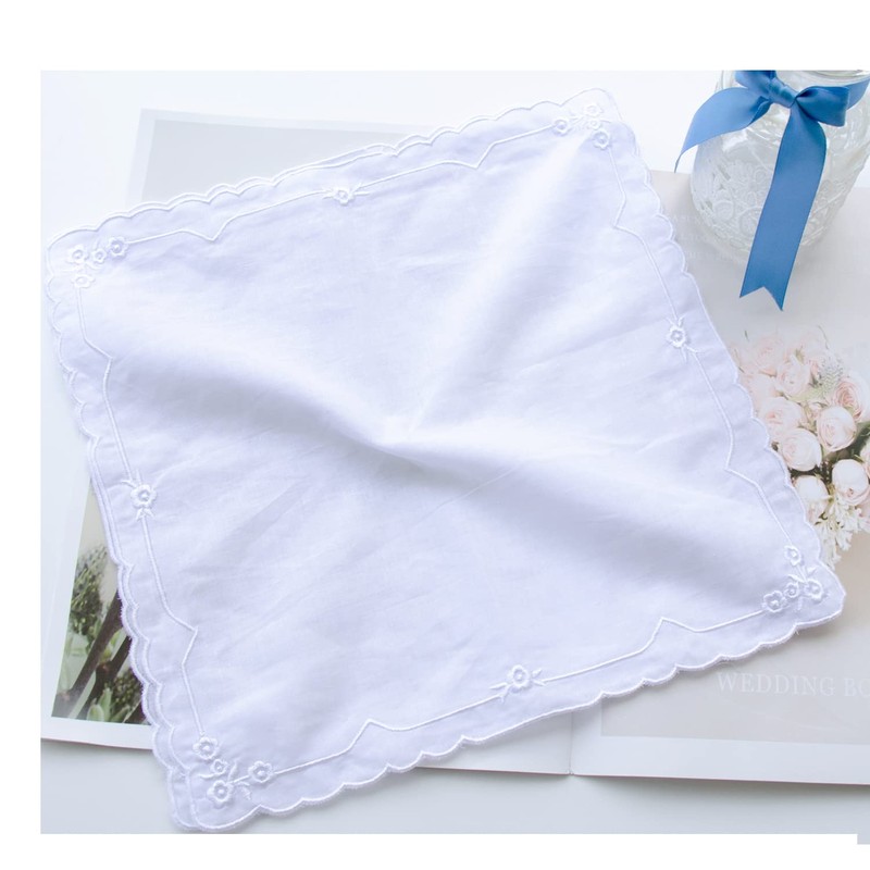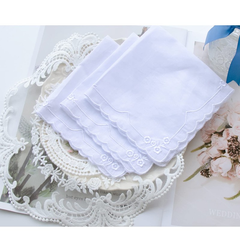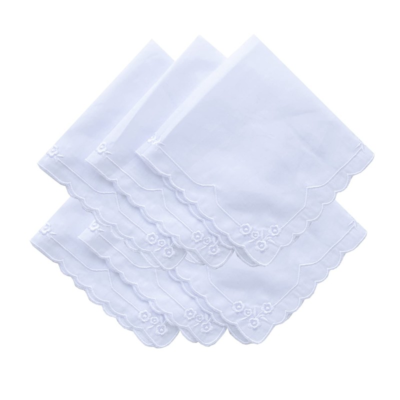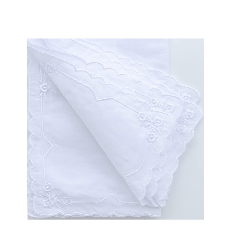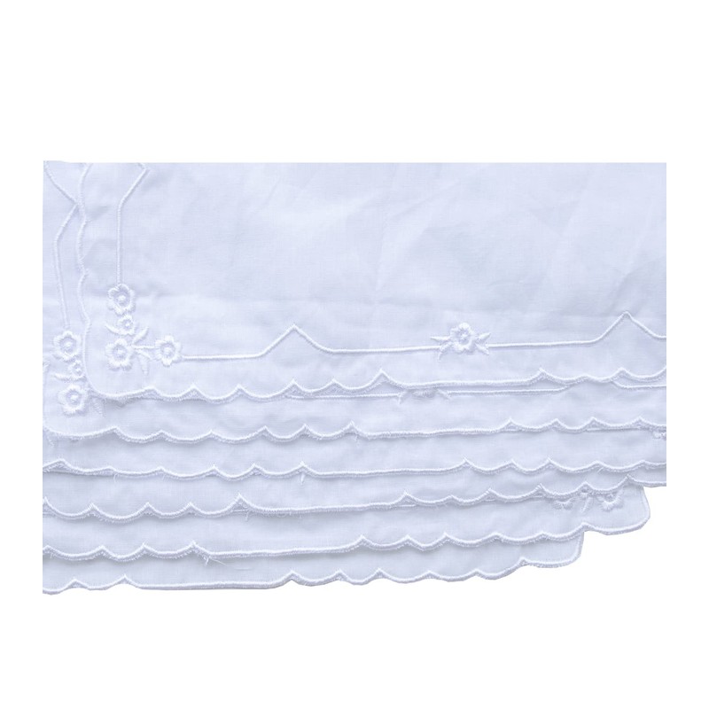 6 Pack of Ladies Embroidery Cotton Handkerchiefs Lace Border White Hankies