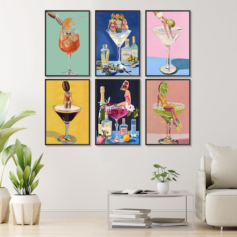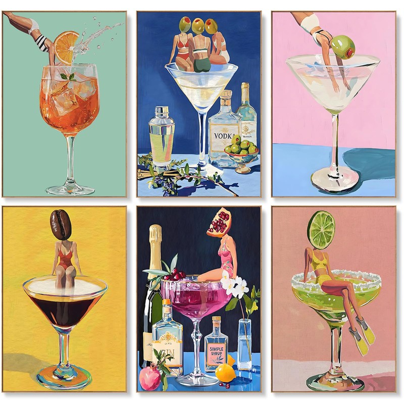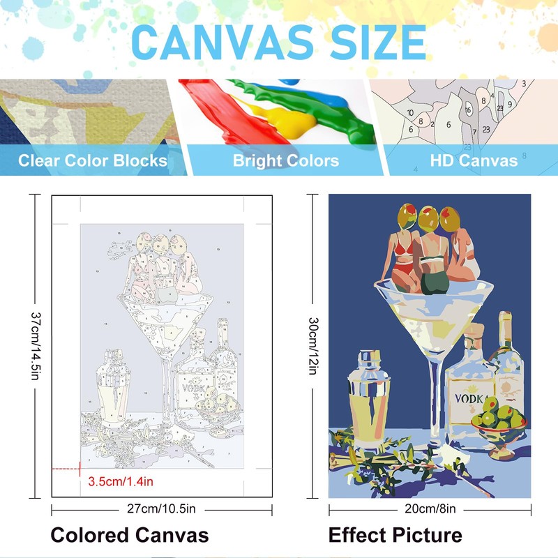 6 Pack Paint by Numbers Kit for Adults Beginners - 8x12 Inch Cocktail Adult Paint by Number Kits on Canvas, Cocktail DIY Acrylic Oil Number Painting Kits for Adults, Perfect for Gift Home Decor