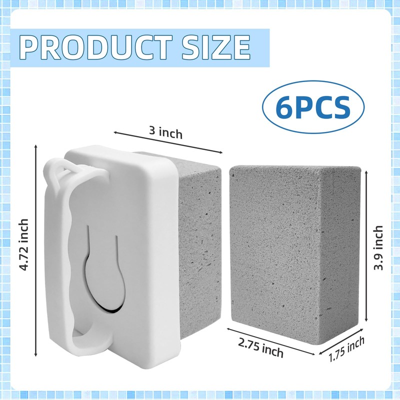 - Complete Cleaning Kit – Includes 6 pumice stone cleaning blocks and 1 durable white handle. The thoughtful design and generous quantity ensure you have enough tools for multiple cleaning tasks.
