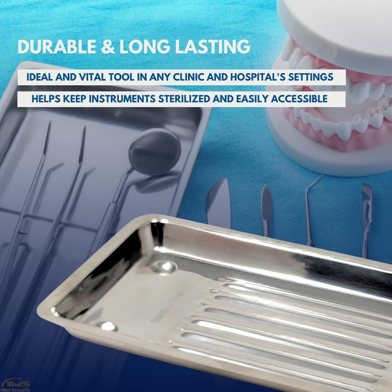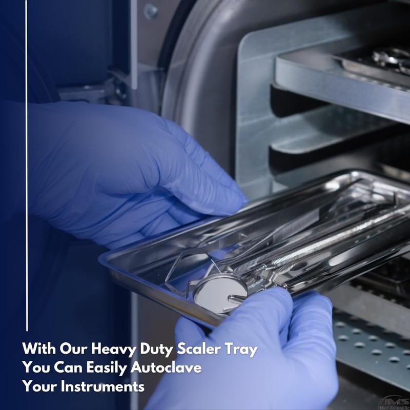 IMPROVES WORK EFFICIENCY: The scaler tray comes with indents that prevents items from rolling over. The one-piece, seamless construction is highly polished to provide durability and remain rust-free. It is easy to wash, clean, and sterilize following your facility's in-house autoclave protocols.