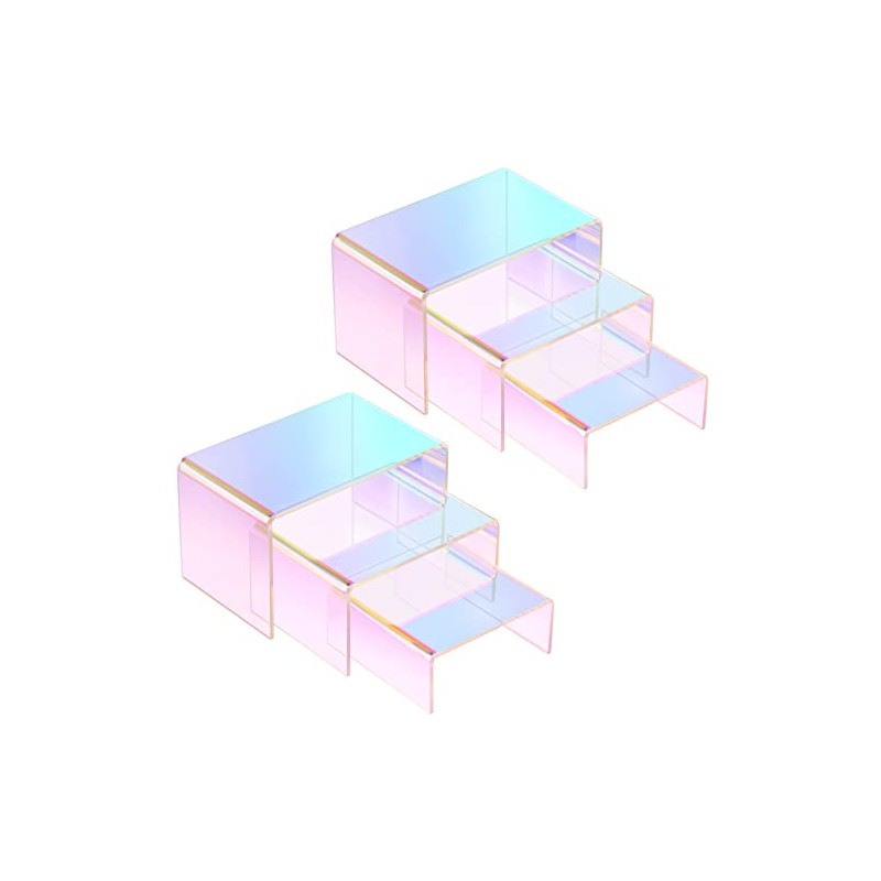 - Package Includes: 2 set square iridescent acrylic display risers, each set contains 3 pieces display risers in 3 different sizes, 6 pieces in total; These display risers are made of acrylic, material looks delicate, sturdy and stable to hold the exhibition