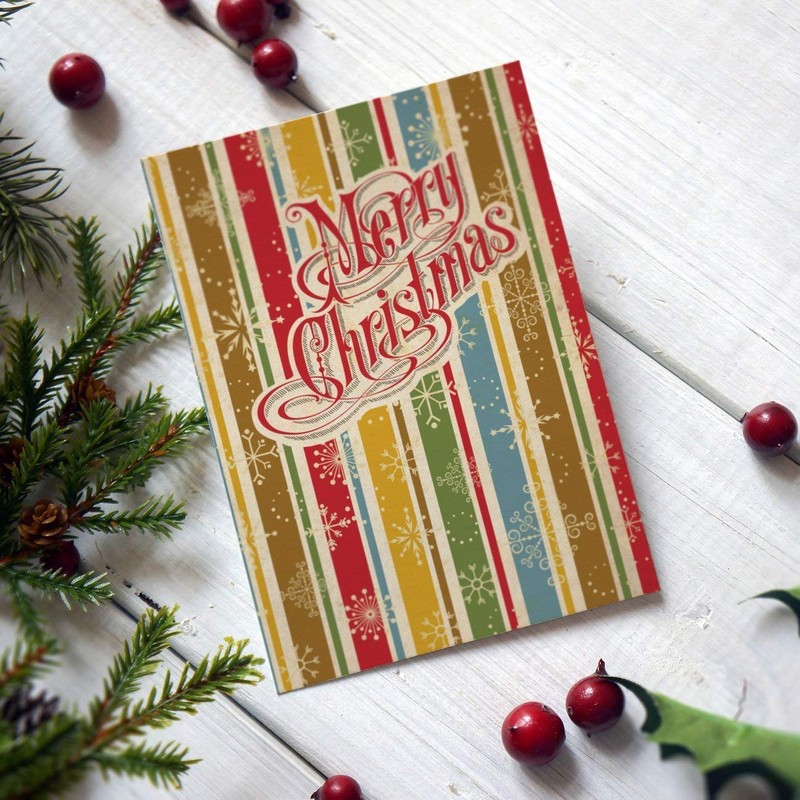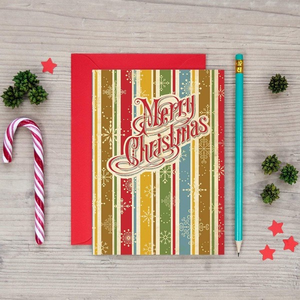 6 Pack Retro Vintage Christmas Cards ~ Merry Christmas Cards with Envelopes