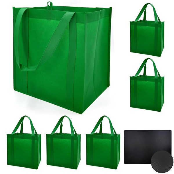 6 Pack Reusable Reinforced Handle Grocery Bags - Heavy Duty Large Shopping Totes with Thick Plastic Bottom can hold 40 lbs (6, green)