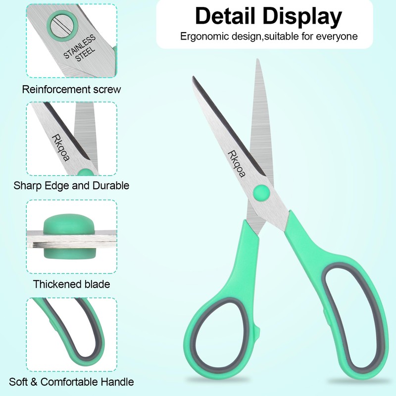6 Pack Scissors Set, Rkqoa 8" Scissors All Purpose- Comfort-Grip Sharp Scissors for Office School Sewing Craft Supplies, Classroom Must Have, Teacher/Class Scissor, Right/Left Handles