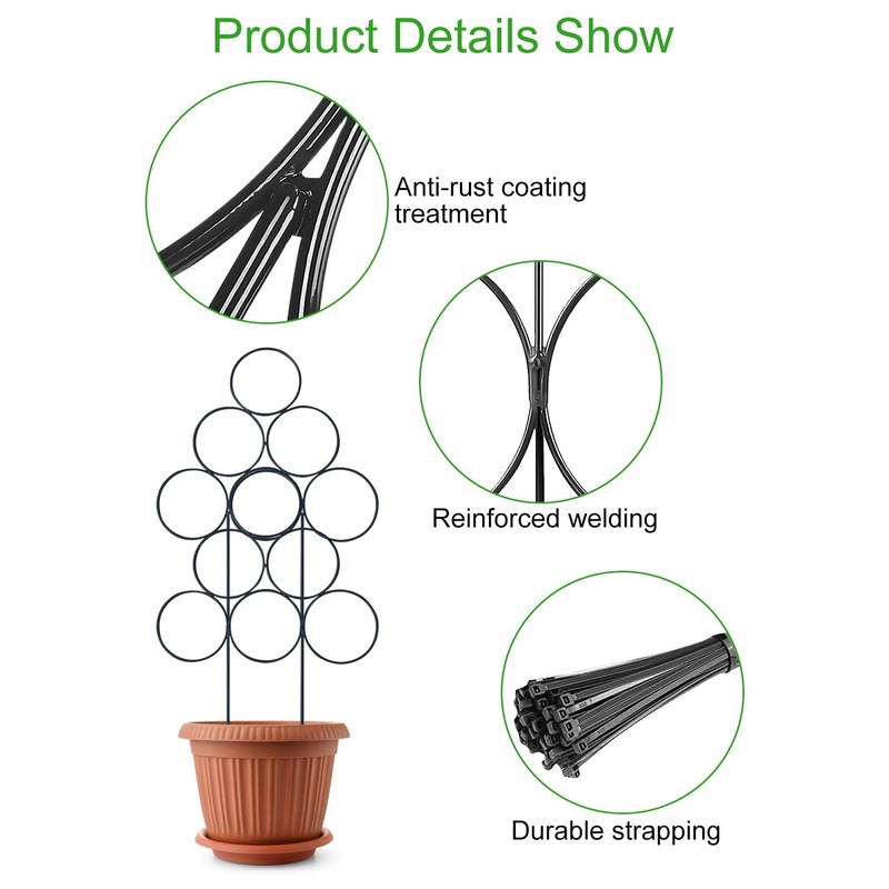 - 【Innovative Design】The plant trellis consists of multiple round iron rings in a modern, minimalist design that can be joined together to form a small garden fence or cross-stacked to create height and support for your potted plants