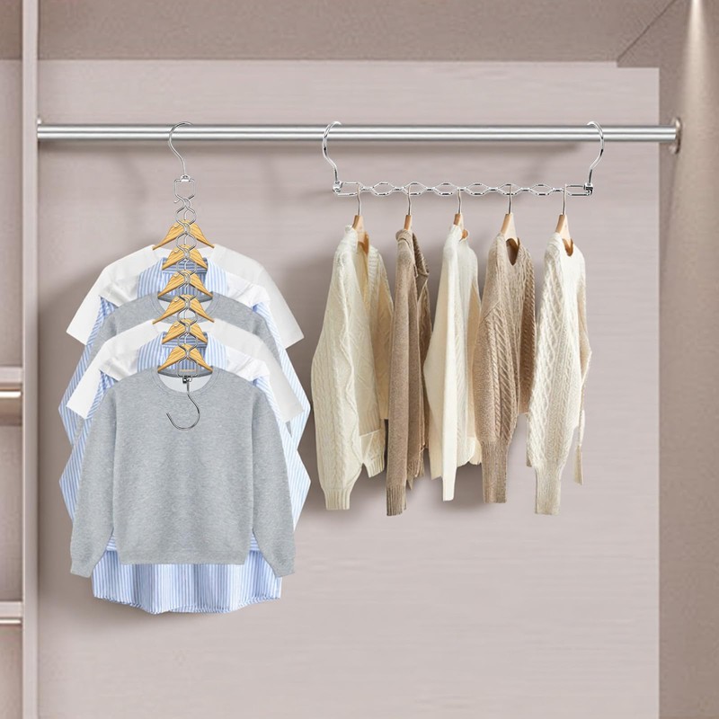 - [Effective space saving] Each magic multi hanger space saving can hold 8 to 16 pieces of clothing, and a set can hold at least 48 pieces of clothing, saving 80% of storage space. The wardrobe storage rack can be folded when idle and does not take up space