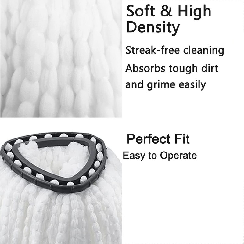 - High Quality : These replacement mop head is made of 100% deep-cleaning microfiber to remove and absorb tough dirt and grime. These triangle spin mop head with white microfiber yarns are highly soft and absorbent and won't scratch the floor’s surfaces and streak-free.