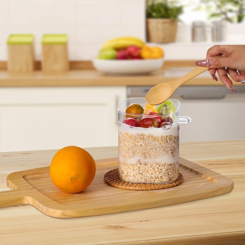 • Airtighr & Convenient Design - A food-grade silicone loop around the bamboo cover lid ensures a nice seal to prevent food from dust in air. The glass jars for overnight oat is equipped with a spoon design, allowing you to easily scoop out the contents as needed.