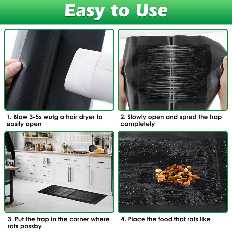 - More Healthier and Easy to Clean: our sticky traps for mice and rats are made of eco friendly material, gentle and non irritating. They are more healthier for your family, kids and pets. It's a real green environmental product. The glue comes with attractive flavor, just lay it on the place where mice often move around, and after use, it's very convenient to wrap the mice and throw them away together
