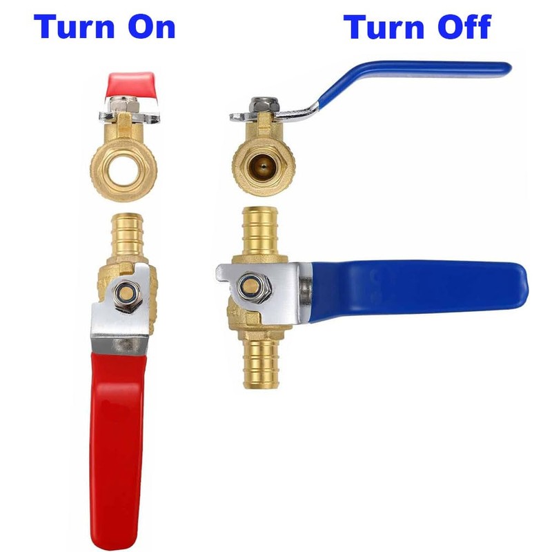 - Pex 1/2 Inch Pex Brass Full Port Shut-off Ball Valve Hot and Cold (Blue and Red Handle)