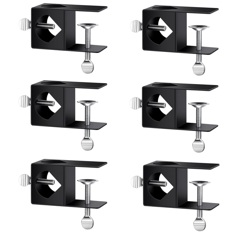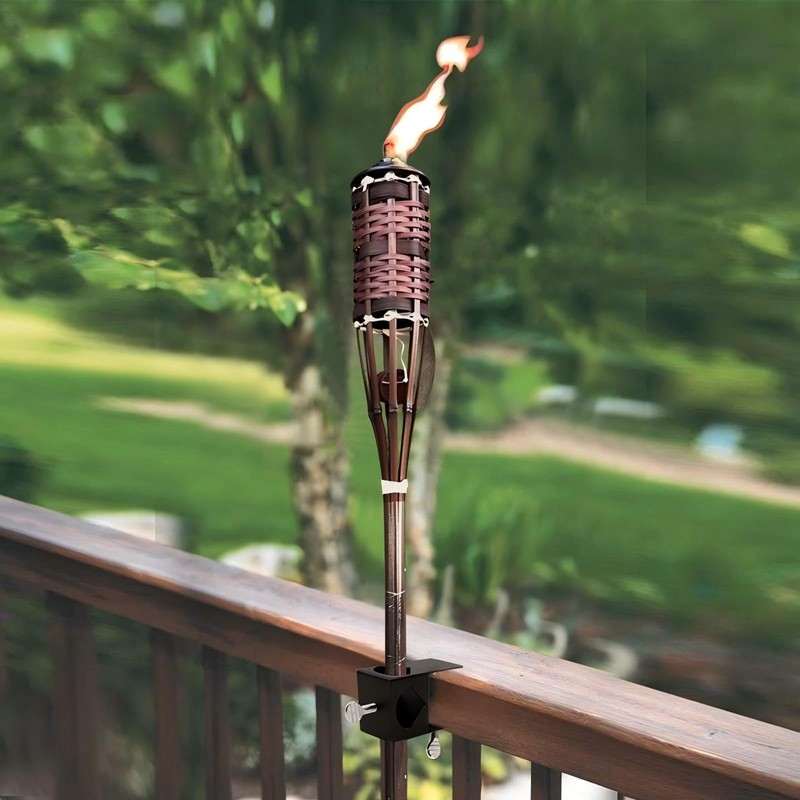 6 Pack Torch Deck Clamp, Outdoor Adjustable Tiki Torch Stand, Deck Light Poles, Deck Railing Bracket, Pole Clamps, Deck Poles for String Lights, Black